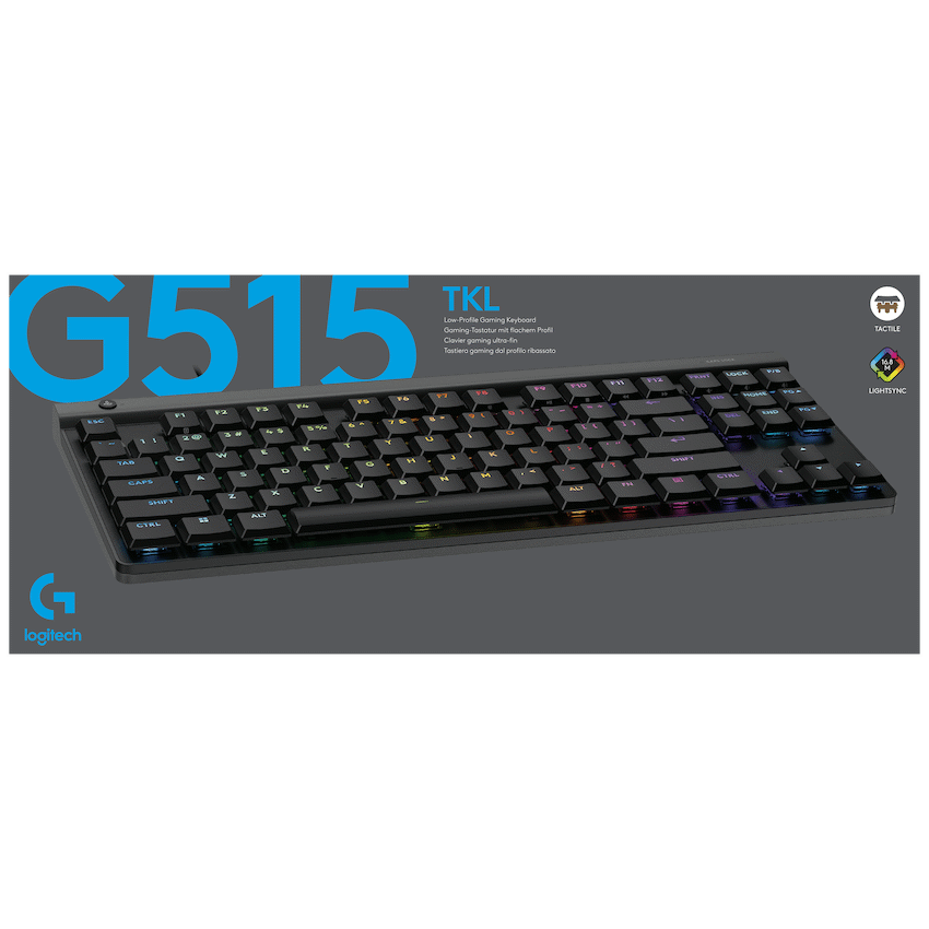Compact gaming keyboard: Logitech G515 TKL wired mechanical gaming keyboard offers a slim profile and numeric keypad design Smooth and precise typing experience: Ultra-thin, factory-lubricated GL mechanical switches for a softer touch, fast actuation and precise typing are available in both touch and linear versions (2 models) Anti-greasy design and premium touch: Dual-layer PBT keys provide durability for the most intense gaming moments and look as good as they perform Lightsync RGB: Access nearly 16.8 million colors to customize your RGB gaming keyboard, create themes and sync other Logitech G gear in G HUB Reliable wired connection: G515 wired gaming keyboard delivers faster performance, no latency or interference; enjoy continuous gaming without charging More Discreet Gaming: This TKL gaming keyboard features soundproof layered construction for a softer touch, better typing experience and more discreet gaming Advanced customization: Keycontrol technology allows you to customize each key to make your PC gaming keyboard a personal control center Low-profile key switch actuation point: 1.3 mm Actuation force: 43 g (Linear) / 45 g(Tactile) Total travel distance 3.2 mm